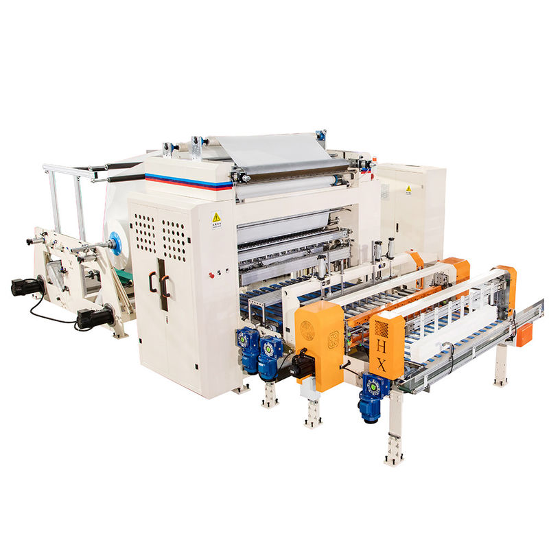 Οι κυλίνδροι κοπής κόβουν τους μεγάλους κυλίνδρους που έχουν σχιστεί στο επιθυμητό πλάτος και στη συνέχεια τους αναδιπλώνουν σε επικαλυπτόμενα ορθογώνια φύλλα ιστού προσώπου.Αυτό το μηχάνημα έχει λειτουργίες αυτόματης σήμανσηςΔιαθέτει υψηλή ταχύτητα, ωραία διπλή λειτουργία και εύκολη λειτουργία.